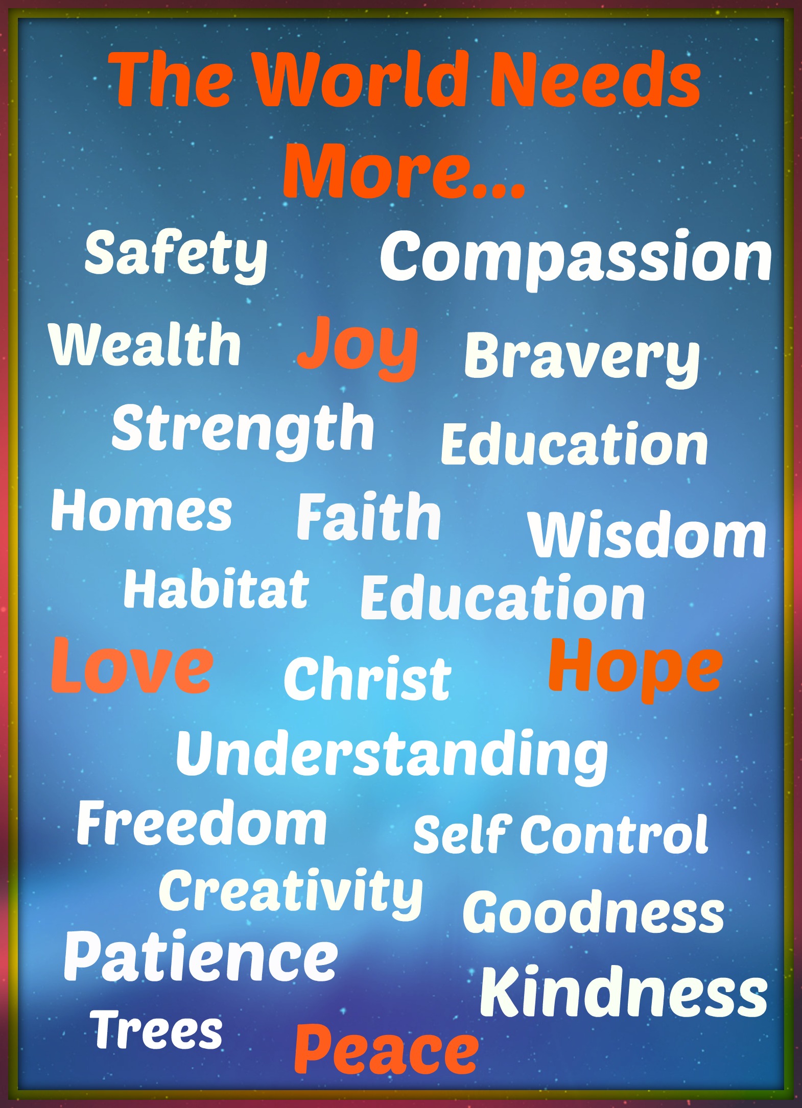 Once in a while, I like to see the world from my kids’ point of view. I’m usually pretty good at knowing them inside and out, but it’s always important for me to see how they are really digesting things they experience and how they process this life and the world they live in. When I saw the prompt for this week’s “Finish the Sentence Friday”, The World Needs More… I immediately thought this would be a perfect question for my kids to answer.